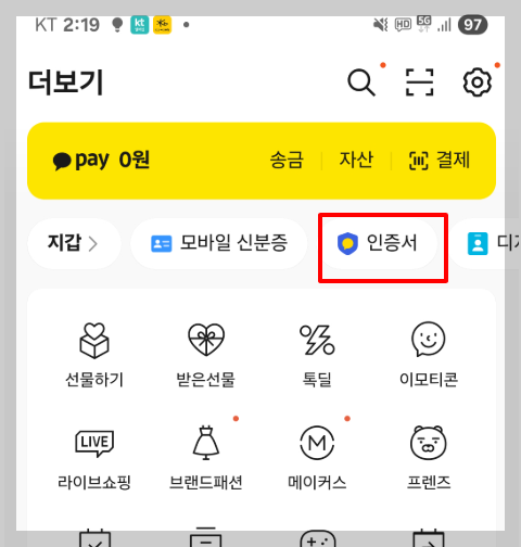 바로 카카오페이 인증서!