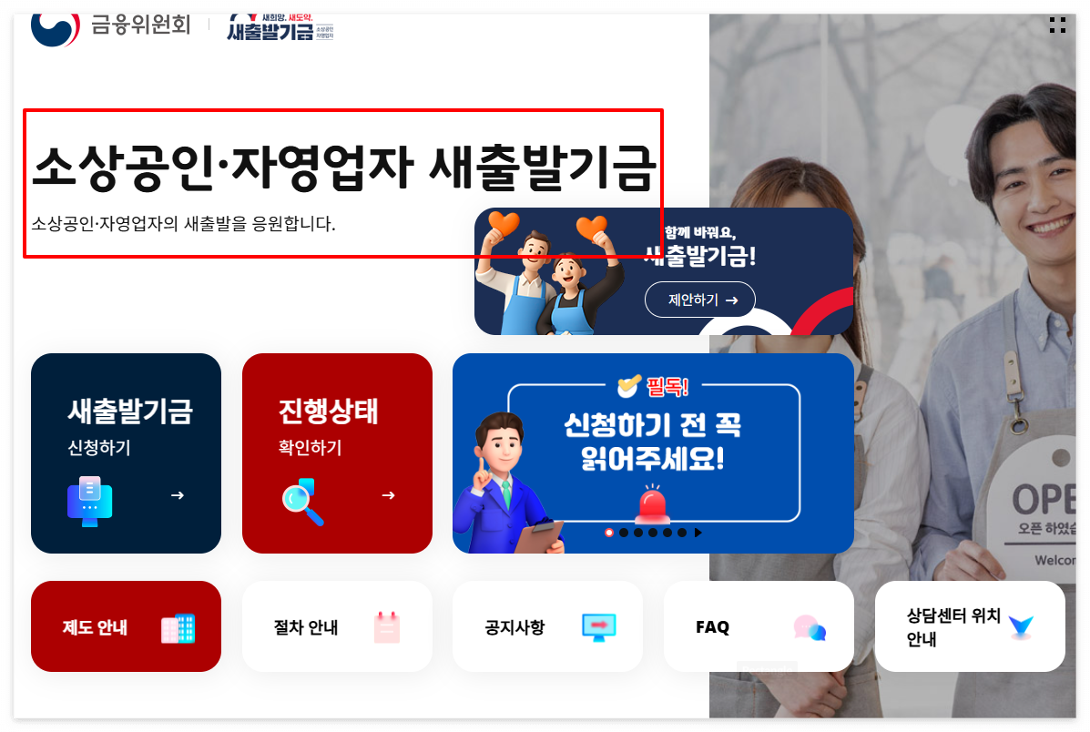 새출발기금, 소상공인지원, 부실차주, 부실우려차주, 신청자격, 신청서류, 온라인신청, 오프라인신청, 금융지원, 채무조정, 소상공인대출, 지원절차, 사업자지원, 중소벤처기업부, 금융감독원